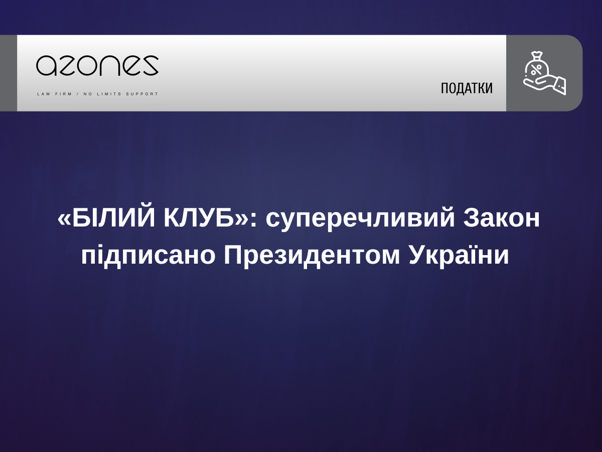 Як вже повідомлялося, 18 червня депутати підтримали Закон № 3813-IX «Про внесення змін до Податкового кодексу України щодо особливостей податкового адміністрування під час воєнного стану для платників податків з високим рівнем добровільного дотримання податкового законодавства» (реєстр. № 11084 від 13.03.2024; або т. зв. Закон «Про Білий клуб»). Президент підписав його лише через місяць, а саме 24.07.2024 р.
